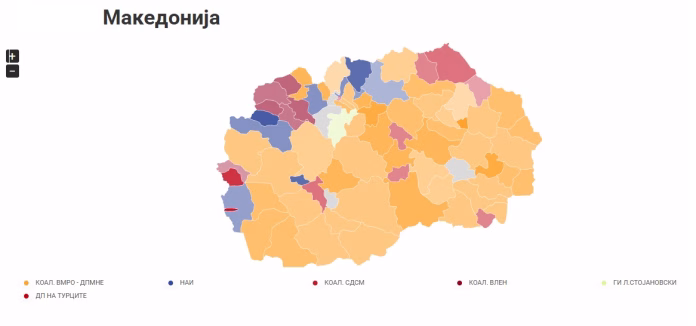 Според првичните податоци, кандидатите на ВМРО-ДПМНЕ водат или веќе имаат обезбедено победа во клучните градови како Скопје, Битола, Прилеп, Охрид, Велес, Аеродром, Гази Баба, Кисела Вода и многу други низ државата. Во Битола, актуелниот градоначалник Тони Коњановски води со 29.29%, во Прилеп Д. Проданоски со 30.93%, а во Велес М. Колев со 39.82% од гласовите, според делумно обработените податоци до 20:45 часот.