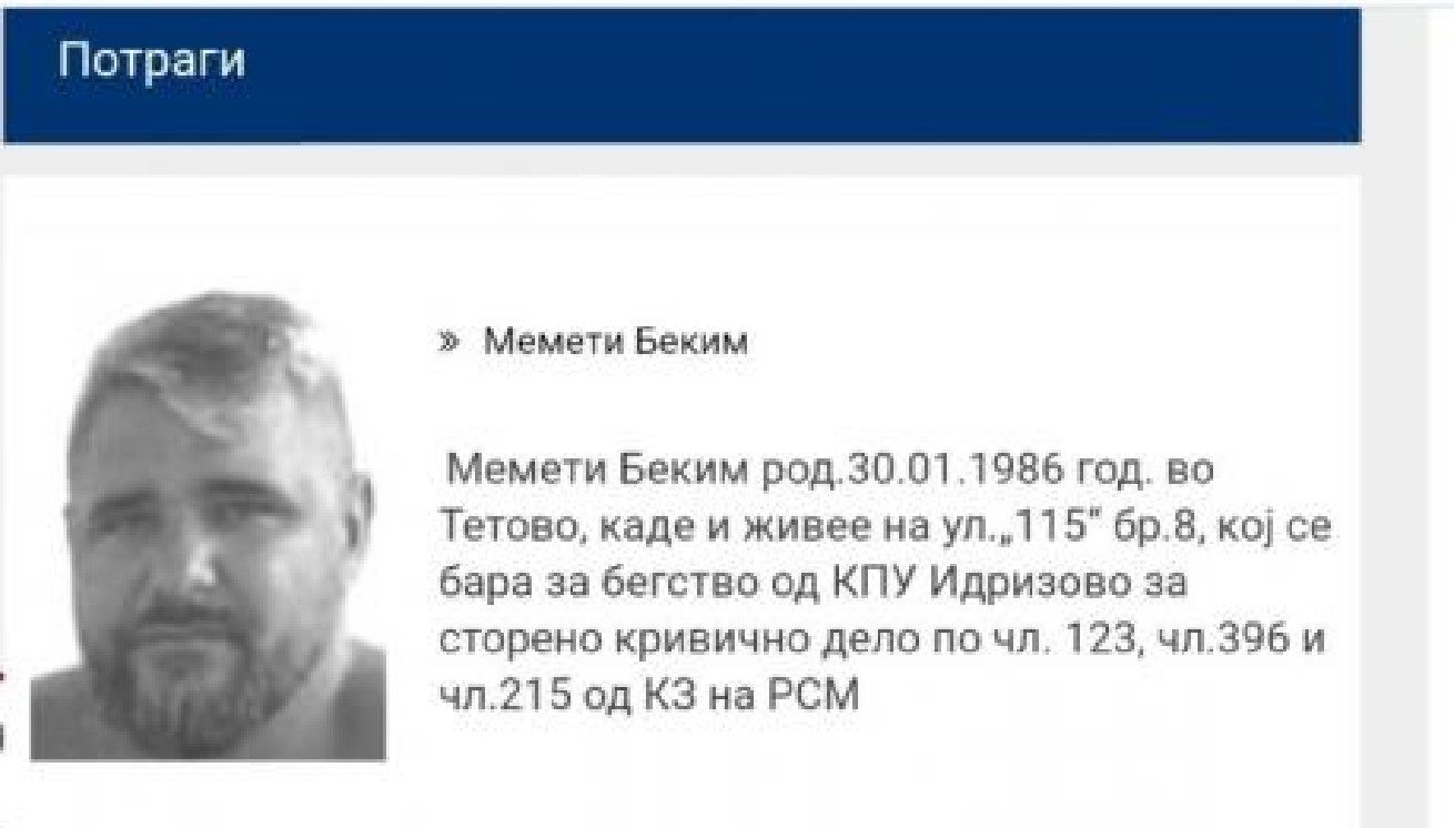 Во јануари Беким Мемети откако се самоповредил се барало да го носат во болница. Но наместо да се повика брза помош, Командирот Срѓан Димитриjевски му наредил на заменикот да изготви документ да се спроведе со полициско комбе, и одредил кои точно полицајци да го спроведат, што за судот беше доволно да заклучи дека организираното бегство било помогнато од командирот и дел од полицајците..