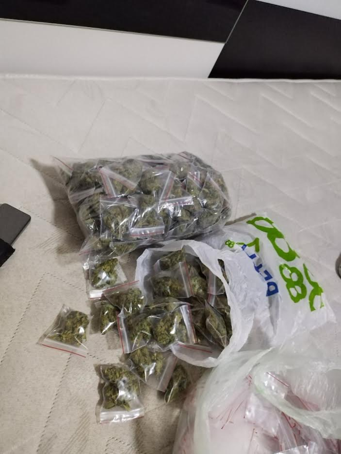 При претрес извршен со судска наредба во дом и други помошни простории каде што живее И.Џ. и при преглед кај него му биле пронајдени и одземени три ќеси со поединечни пакувања марихуана и дигитална вага.