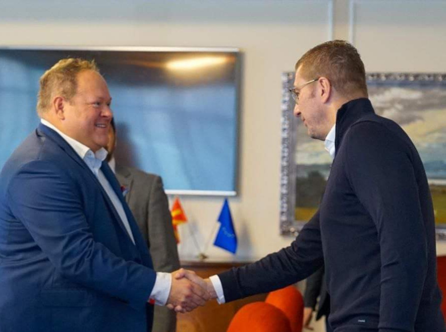 Претседателот на ВМРО-ДПМНЕ Христијан Мицкоски денеска оствари средба со Роберт Скот Хeјзлет, виш директор на НДИ во Македонија.