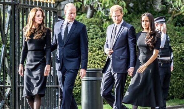 Хари и Меган им се придружија на Вилијам и Кејт во јавност за првпат од Денот на Комонвелтот на 9 март 2020 година, додека ги разгледуваа цвеќињата и балоните што посетителите ги оставаат во спомен на кралицата Елизабета Втора, а потоа се поздравуваа со насобраните луѓе пред замокот.