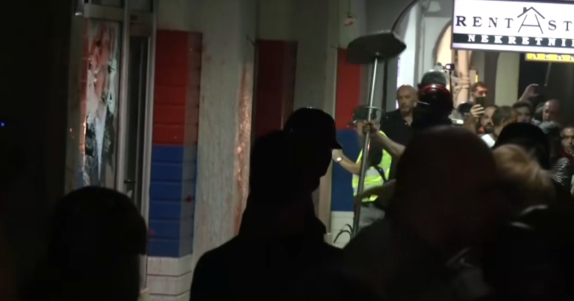 Хулиганите ги скршија стаклата, влегоа во просториите и однесоа знамиња на Србија, а од објектите беа симнати и камери. Полицијата во моментот не е присутна пред просториите.