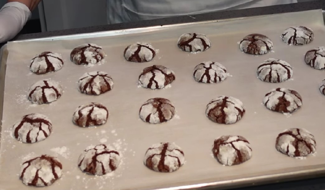Со лажица се зема тестото, се обликуваат топчиња (со големина на помал орев), се валкаат во шеќер во прав и се редат во тавата (направете простор меѓу топчињата бидејќи ќе нараснат при печењето).