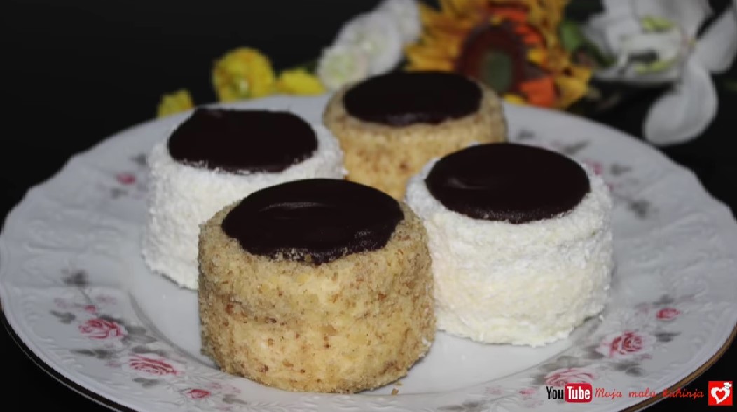 Намачкајте го кремот однадвор и валкајте во кокос. За преливот растопете ја чоколадата, додадете го маслото, измешајте и прелијте ги капачињата. Оставете ги капачињата да се стегнат, па послужете.