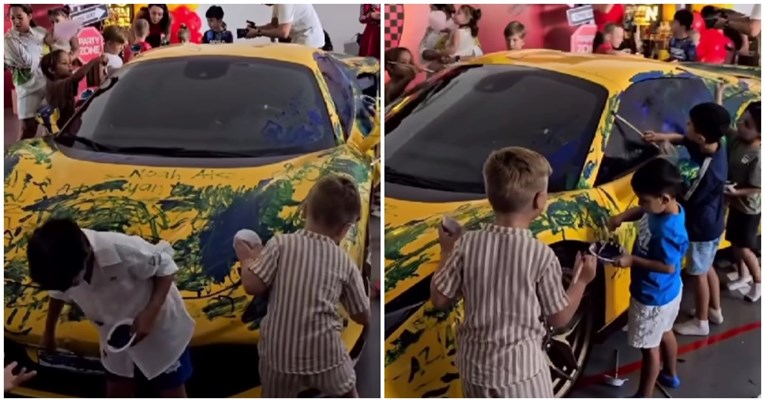 Имено, наместо балони и кловнови, децата во Дубаи, градот на богаташите, се забавувале цртајќи на Ферари од 500.000 долари или околу 448.000 евра.