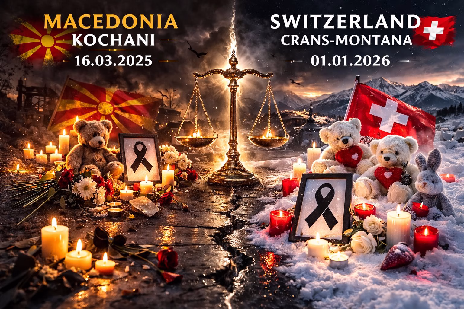 Здружението на граѓани „16ти Март 2025“ реагира со споредба на институционалните одговори по трагедијата во Crans-Montana во Швајцарија и трагедијата во Кочани од 16 март 2025 година, оценувајќи дека двете држави покажале целосно различен пристап кон справување со последиците.
