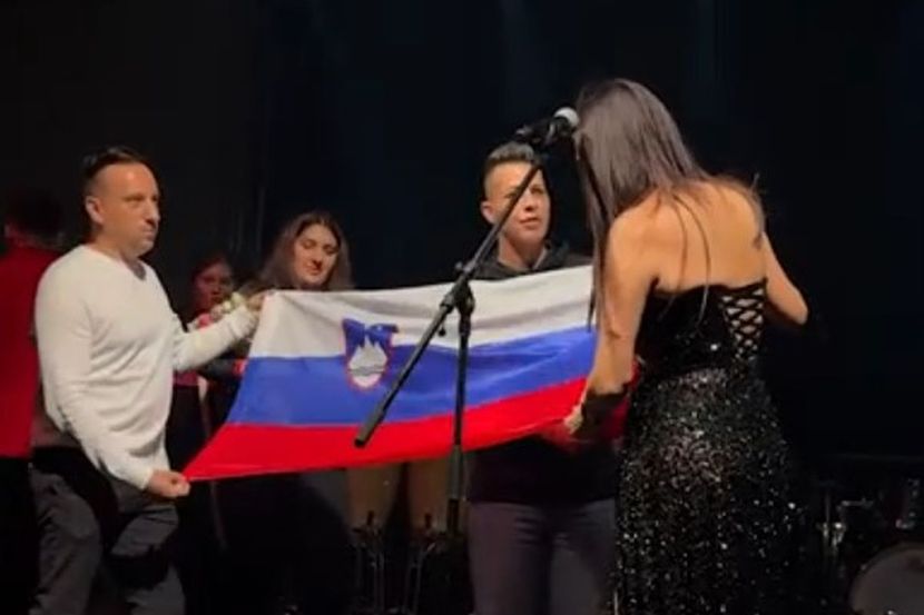 На видео бимот зад неа беа прикажани кадри од нејзините претходни настапи низ Словенија, а вечерта стана уште поемотивна поради необичниот подарок што го доби.