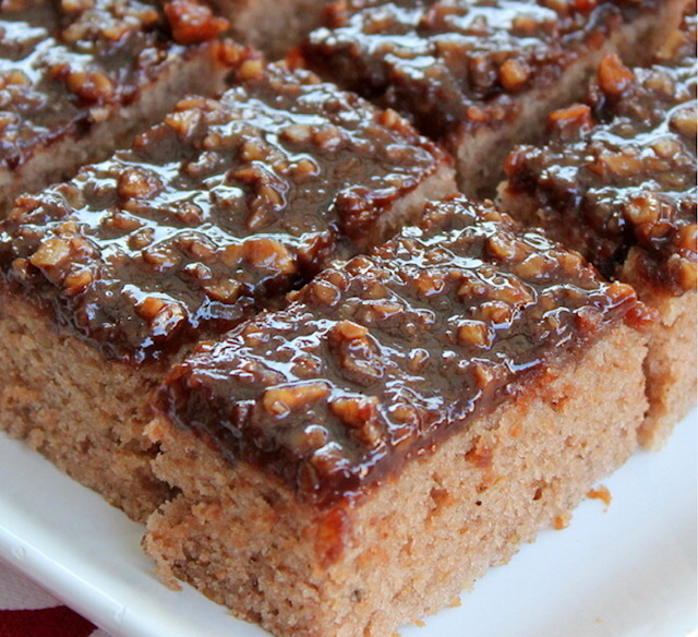 Прелив: Сварете ја водата со шеќерот, па додадете путер и чоколадо, па на многу тивок оган мешајте додека да се растопат и соединат состојките. Потоа додадете ги оревите и промешајте. Топло прелијте преку колачот.