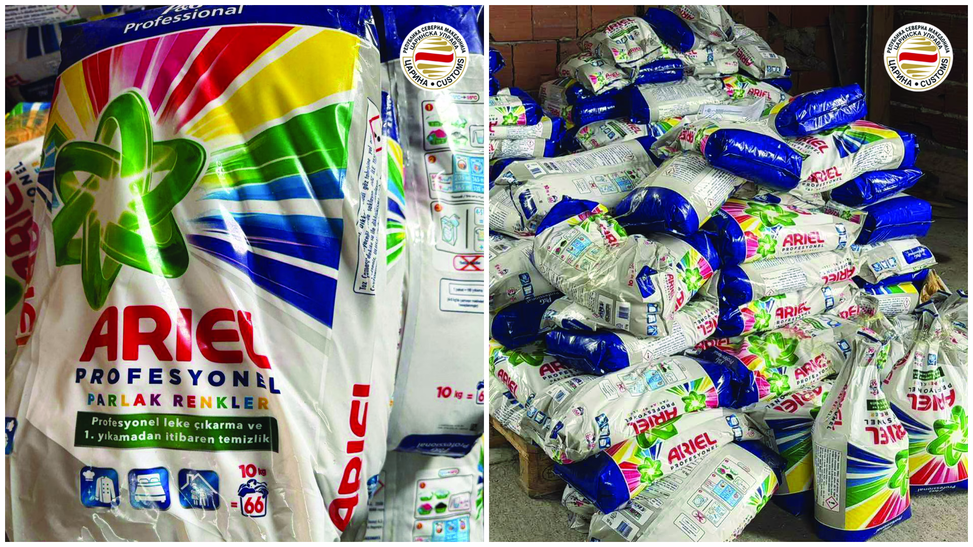 Царински службеници од ЦИ Тетово спречија обид за криумчарње стока која била натоварена во Турција и наменета за увозник од Скопје. Станува збор за 2000 кг, или 200 вреќи од по 10 кг прашак за перење алишта со трговска марка Ариел која ги повредува правата од интелектуална сопственост.