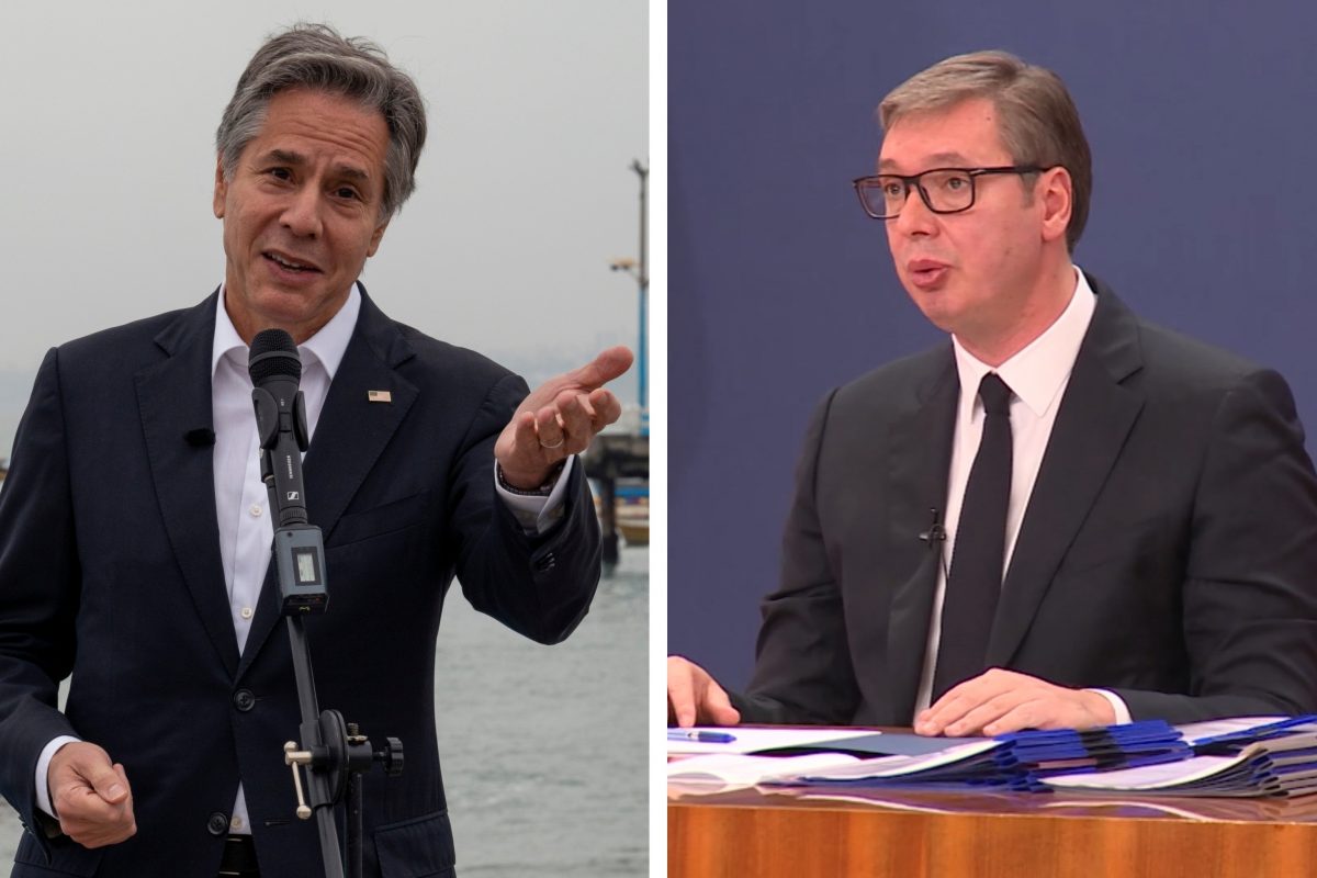 Претседателот на Србија, Александар Вучиќ, телефонски разговарал со државниот секретар на САД, Ентони Блинкен, соопштија денеска од кабинетот на Вучиќ.