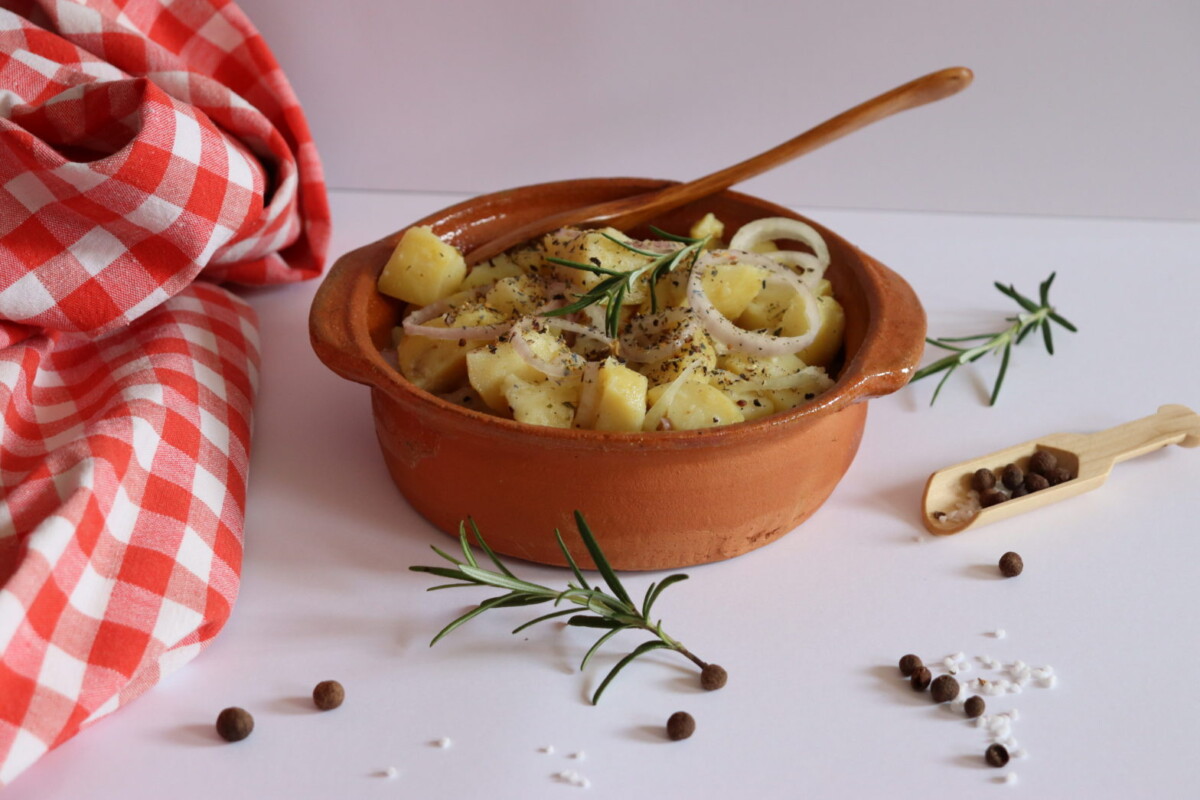 Во многу култури, компирот се ужива во безброј варијации како главен оброк или како гарнир. Не можеме со сигурност да кажеме дали е правилно да се нарече овој вид салата „македонска компир салата“, но можеме со сигурност да потврдиме дека Македонците овој вид на салата го служат на трпезите за различни пригоди или слави. 🙂 Откако компирите ќе бидат варени и се оладат, салата се подготвува многу брзо и само во неколку едноставни чекори.
