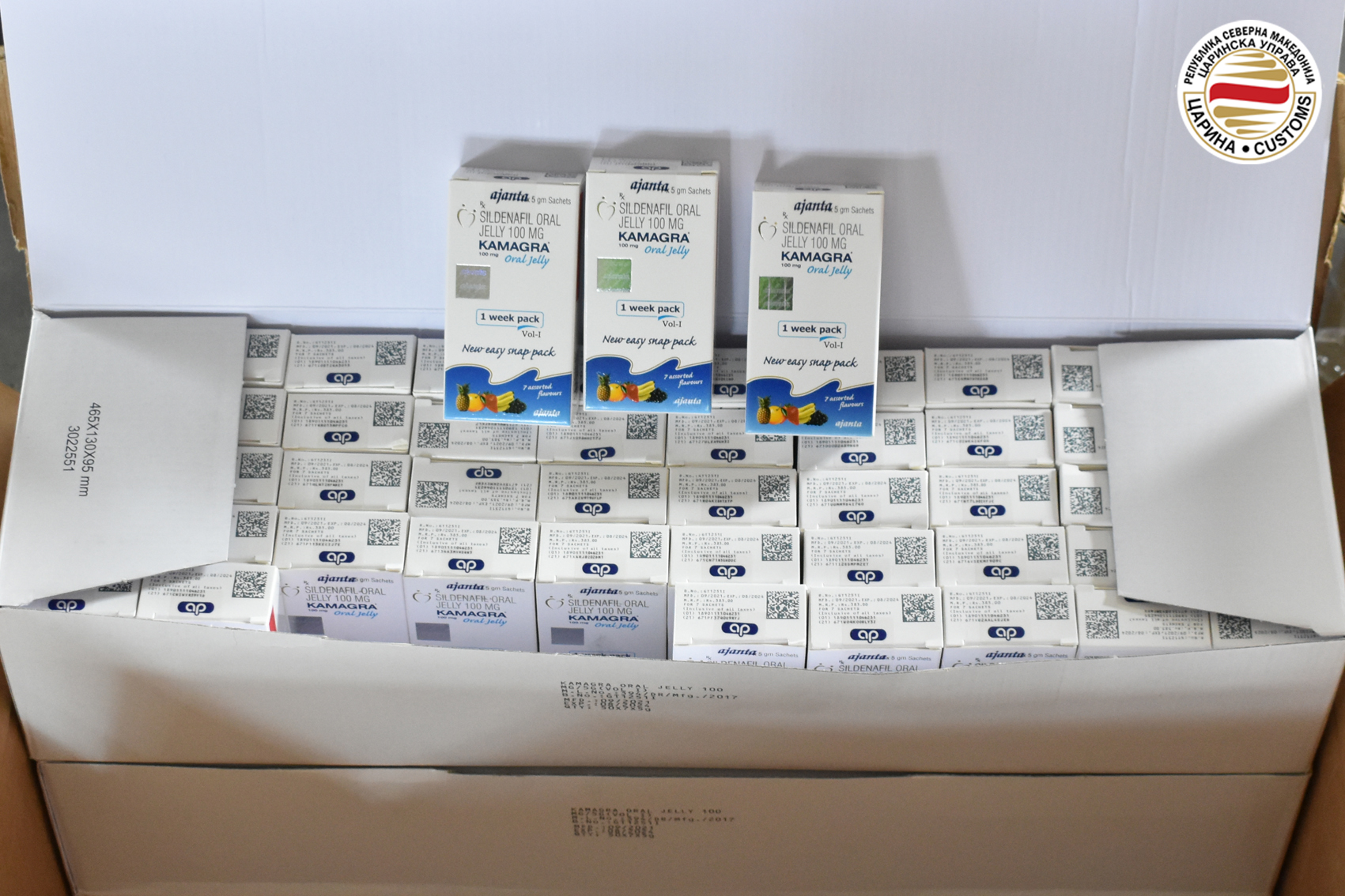 Спречена нелегална трговија на 4 тона апчиња и гел за орална употреба за потенција во вредност од 41,7 милиони денари ризични по здравјето на граѓаните, откако царински инспектори од Секторот за контрола и истраги при детален преглед на стоката утврдија дека фирмата која ja внела стоката во државата нема важечко решение за вршење промет на големо со лекови и медицински средства. Воедно стоката е лек кој не е регистриран во Регистарот на лекови што го води Агенцијата за лекови и медицински средства на Република Северна Македонија и е различно декларирана.