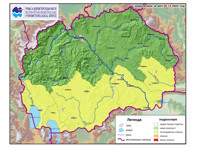 Управата за хидрометеоролошки работи (УХМР) издаде жолто ниво на предупредување од поплави за утрешниот ден. Според проценките, постои потенцијален ризик од локално излевање на реките и суводолиците во крајните јужни и југоисточни региони на државата.