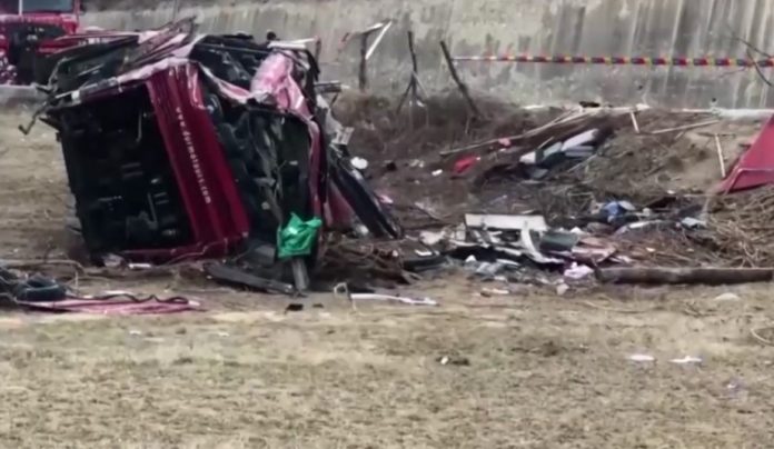 Автобусот ја загуби контролата и падна во провалија откако ја проби заштитната ограда на автопатот.