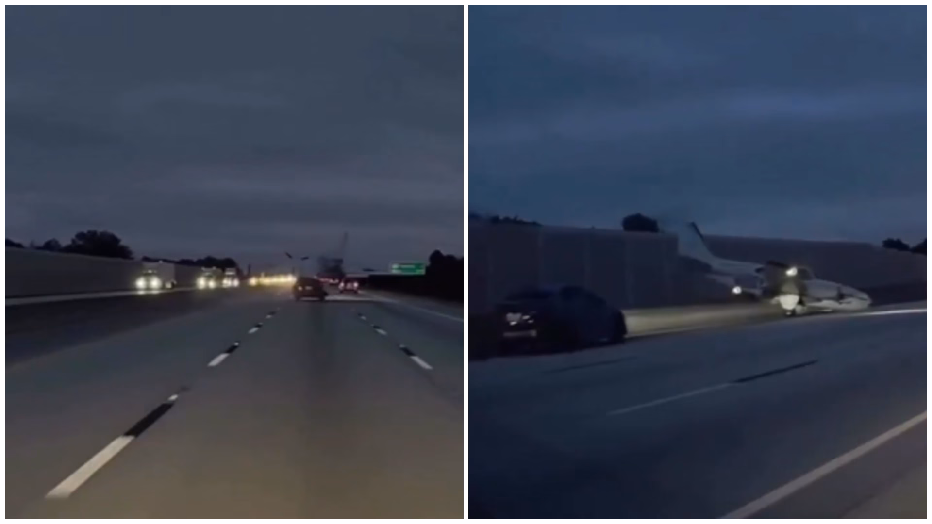 Снимки од камерата во автомобилот покажуваат како авионот, во обид за итно слетување, се урнал на прометниот автопат и го погодил автомобилот. Авионот се одби од задниот дел на Тојотата пред да падне на страна, додека од местото на ударот летале искри.