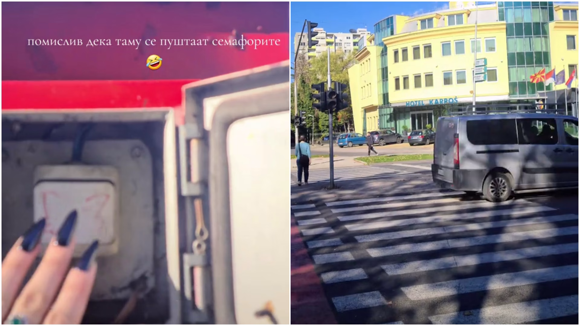 Видео објавено на TikTok од профилот @kateblane предизвика вистинска бура од реакции меѓу скопјани, откако во него се гледа како објавувачот, стоејќи покрај отворено сандаче со прекинувач за струја, експериментира со вклучување и исклучување – за да види што ќе се случи со семафорите на булеварот „Партизански одреди“.