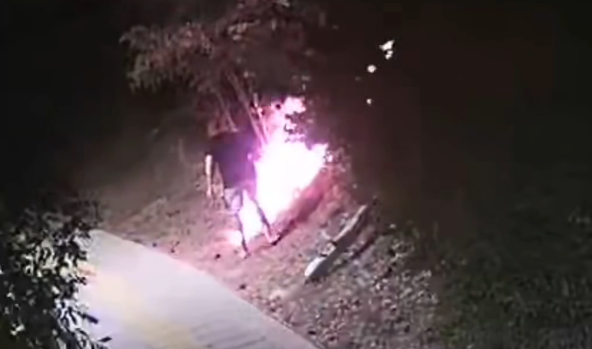 Видео материјалот, кој веќе се шири на социјалните мрежи, е клучен доказ за намерно потпалување, додека пожарникарските екипи и цивилната заштита водат борба со стотици пожари низ целата држава.