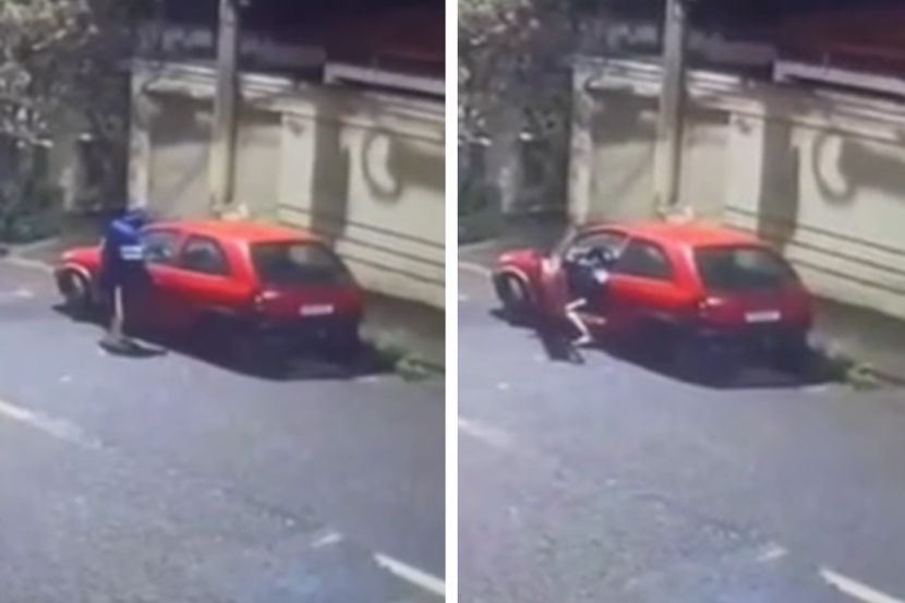 Безбедносната камера снимила непознат млад човек кој под превезот на ноќта, кога улицата била пуста, ја пробил бравата и го украл автомобилот.