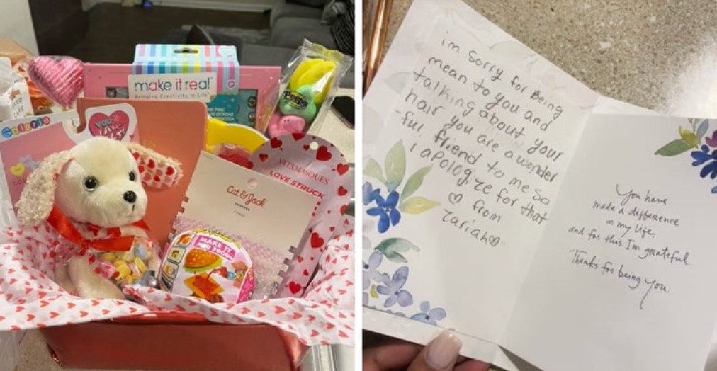 Ја принудила својата ќерка да подготви корпа за извинување со подароци и рачно напишано извинување до девојчето од нејзиниот клас.