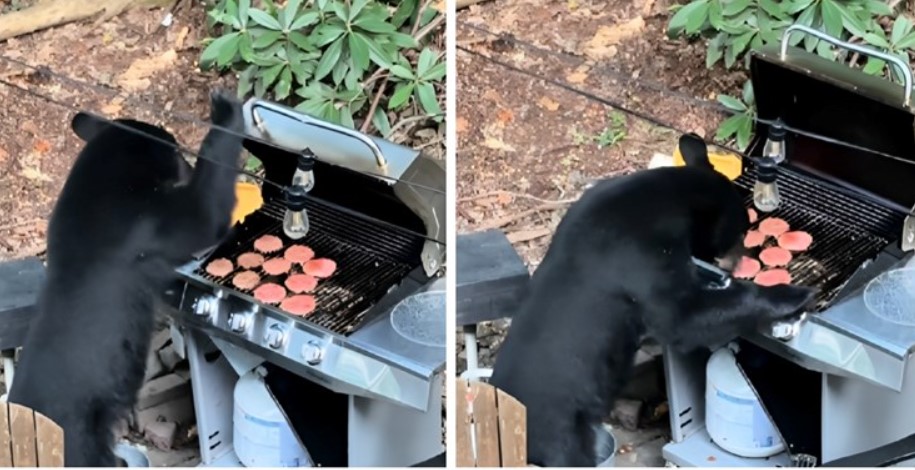 ЕДНА мечка решила да ги заслади работите кога во друштво на друг „колега крадец“ влегла во дворот на семејната куќа во Тенеси и видела скара.