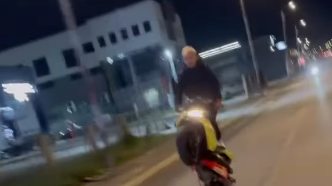Зад него се движи уште еден мотоцикл со две момчиња кои го снимаат, а и самите подоцна го игнорираат црвеното светло.