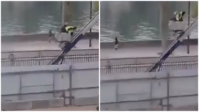 На социјалните мрежи е објавена видео-снимка од крадците кои во недела, 19 октомври, го ограбиле Лувр. На снимката се гледа како двајца крадци се спуштаат со дизалица по кражбата и потоа се качуваат на скутери за да побегнат.