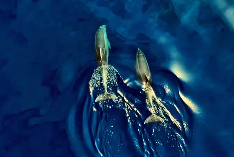 Една таква глетка е снимена со дрон во близина на островот Крк, во видеото на кое се гледаат двајца делфини како пливаат заедно, си играат, додека авторот на видеото изјавил дека на патот наишол на училиште од седум делфини.
