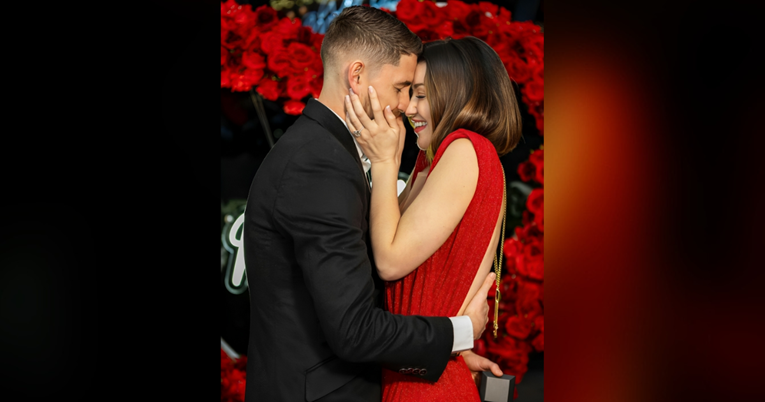 На неонскиот знак пишуваше „Дали ќе се омажиш за мене? под големо срце направено од цвеќиња, додека на подот беа изложени фотографии од парот. „Ново поглавје во нашата приказна“, напиша тој на Инстаграм, а неговата свршеница ги сподели сликите со натпис: „Љубов моја“.