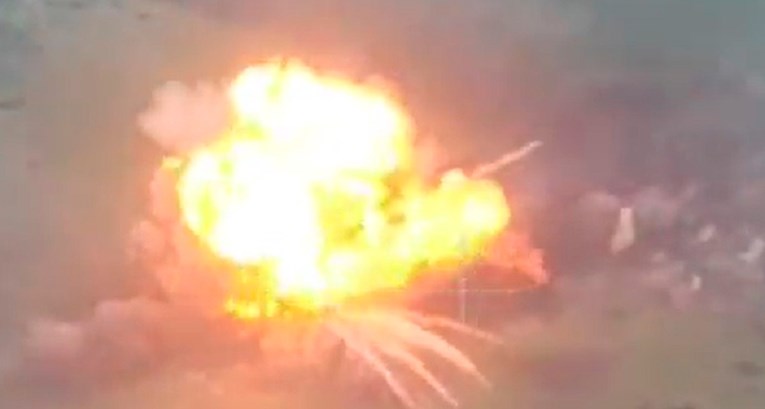 The attempt failed as the remotely-controlled bomb ran into a mine 100m from the front line, and was then hit by a Ukrainian RPG shot, causing a huge explosion. pic.twitter.com/sXXI57wV7v