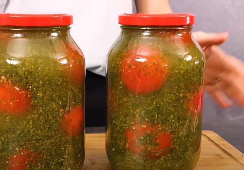 Теглите покријте ги со некое ќебенце или пешкир и оставете да се олади на собна температура, а потоа чувајте го на темно и ладно место. Вака приготвениот домат е многу вкусен и спремен за зима. Има рок од 12 месеци.