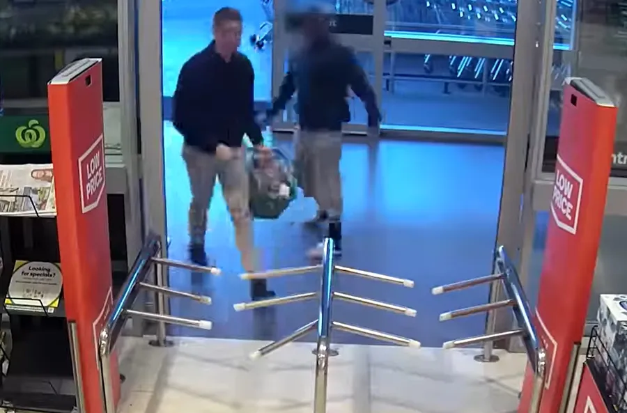 Во продавница во Окленд, Нов Зеланд, безбедносна камера го снимила моментот кога непознато лице се обидело да избега со корпа со намирници. За негова несреќа, полицаец кој случајно застанал да купи нешто на пат кон работа влегол во продавницата токму во тој момент, пишува Дневник.хр.