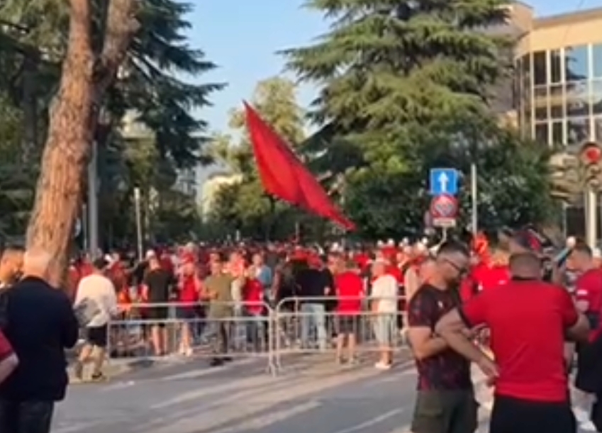 Всушност, целиот поширок дел од градот е „окупиран“ од попладнето, сообраќајот е блокиран, а „дупката“ се наоѓа пред стадионот „Ер Албанија“ каде што локалните навивачи чекаа и го пречекаа автобусот со српската фудбалска репрезентација.