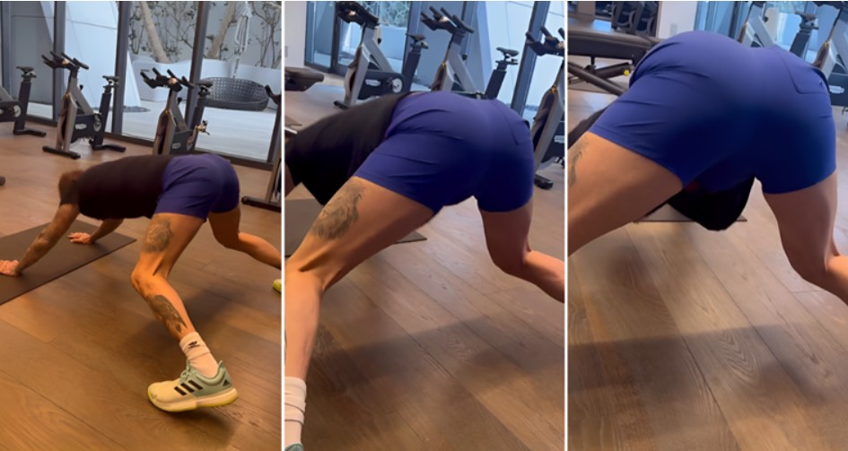 „Утрински тренинзи со оваа љубовна машина“, напиша таа на објавата. Сепак, вежбањето на Дејвид ги доведе следбениците на Викторија на Инстаграм во транс – особено што таа ја насочи камерата на телефонот директно на задната страна на нејзиниот сопруг. Многумина и се заблагодарија за ова видео.
