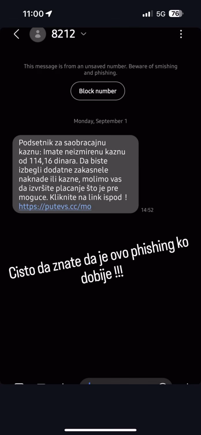 Последниве денови, голем број граѓани во Србија добиваат СМС пораки со лажни известувања за неплатени сообраќајни казни или царински давачки за пакети, што претставува нов бран на „smishing“ (phishing преку СМС) измами со цел кражба на лични и финансиски податоци.
