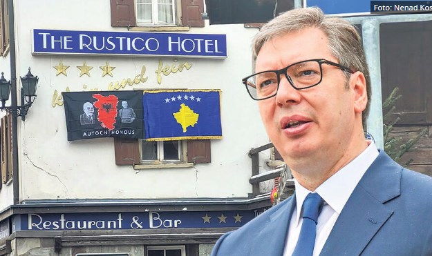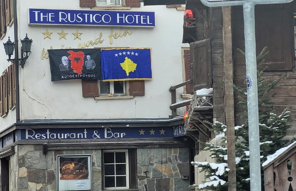 Хотелот се наоѓа отспротива каде што е сместен претседателот на Србија Александар Вучиќ.Покрај знамето на Голема Албанија истакнато е и косовското знаме.