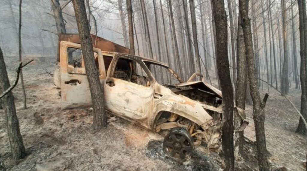 Во големиот пожар вчера во источниот дел од Македонија, изгоре единственото возило на ДПД Пехчево, објави заменик директорот на ЈП Национални шуми Кире Михајлов.