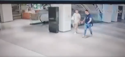 На видеото се гледа како двајцата сега веќе повредени излегуваат од теретана и се упатуваат кон најблискиот излез и скали.