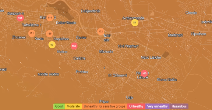 Според последните мерења, Ново Лисиче е најкритично со индекс на квалитет на воздухот (AQI) 166, што се категоризира како „нездраво“. Следуваат: