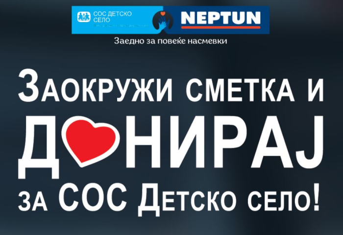 Секој купувач во НЕПТУН продавниците во периодот од 01 декември до 31 декември 2022 година ќе можат да се приклучат во семејството поддржувачи на СОС Детско село преку иновативен начин на донирање. Секој купувач ќе може да ја заокружи својата сметка на каса и да донира за СОС Детско село со износ по свој избор во рамките на сметката.