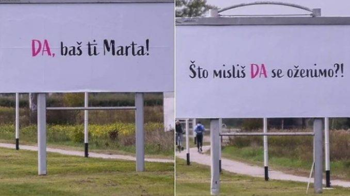 Иако реши да остане анонимен, начинот на којшто додворувачот ја побара својата девојка за жена, секако не остана незабележан. Имено, човекот решил да го постави големото прашање на три билборда, распоредени крај автопат близу Загреб, адресирани до Марта.