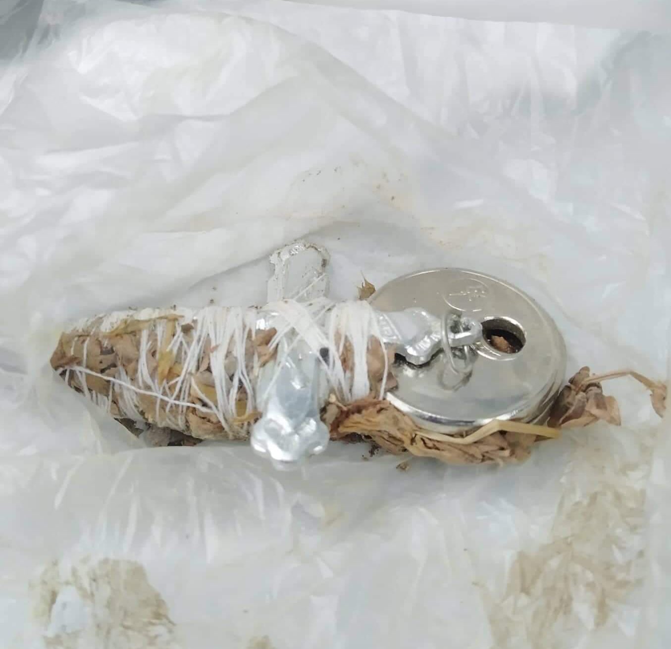 „21 век и луѓе уште прават вакви работи, вознемирувајќи стари и млади дома. Дали некој знае можеби кој прави вакви работи кај нас ? Вака, завиткано во кеса и оставено ДОМА, пази не у двор, него дома. Ако знае некој нешто, што е ова, инфо плис!“